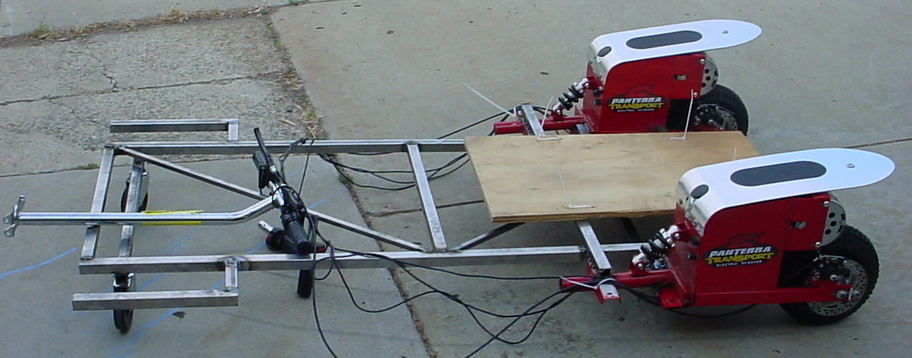 Here is the first prototype of the vehicle (code name Mini-ME). It was intended to have all the wheels replaced and 2 more motors plus enough batteries to drive 10-30 miles. Goal of Mini-ME to go further than CMU did on their first try for less than $1000.