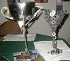 Trophy to immediate right and left presented to Philly Steak & Pizza in Mission Valley, San Diego for Best Cheese Steak.
